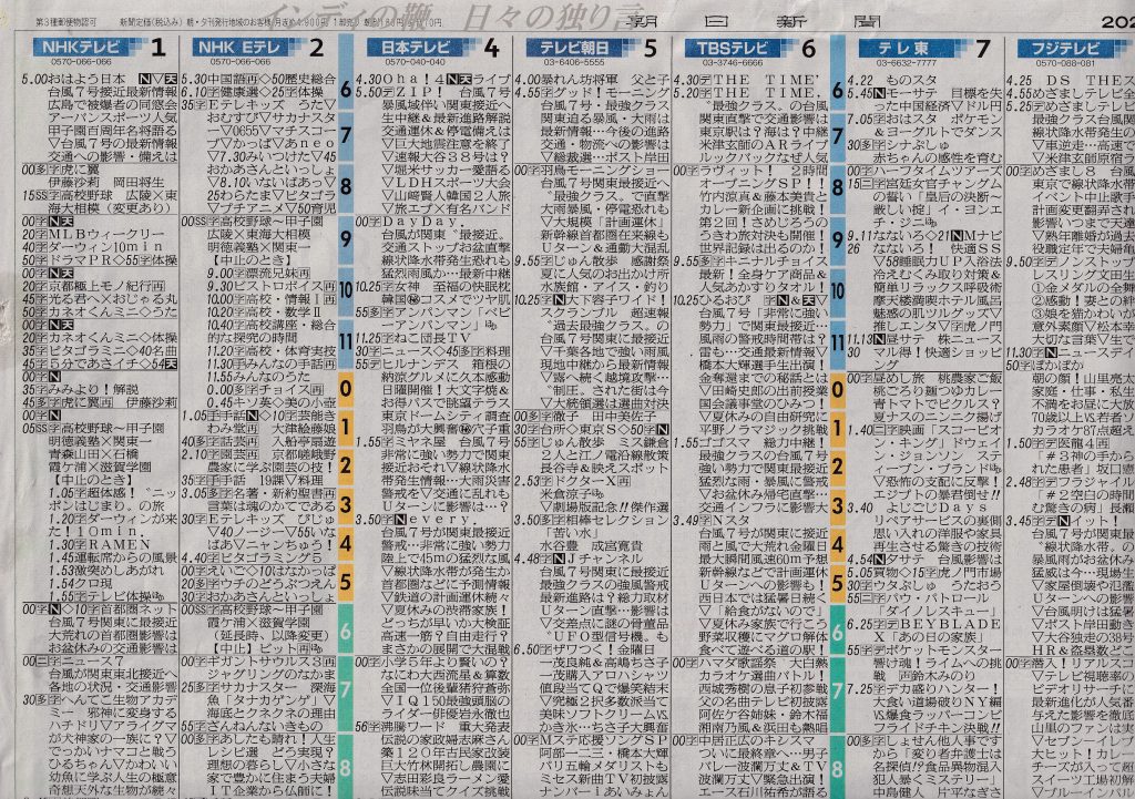 テレビ番組は決まったものしか見ません。それでも、朝日新聞のテレビ欄は毎日チェックしています。馬鹿番組を確認し、それを馬鹿にするためです。
