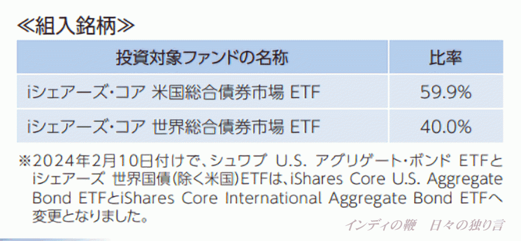 その内訳を見ると、株式のオルカンとまったく同じで、全世界といいながら、全体の約6割が米国債です。